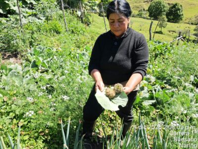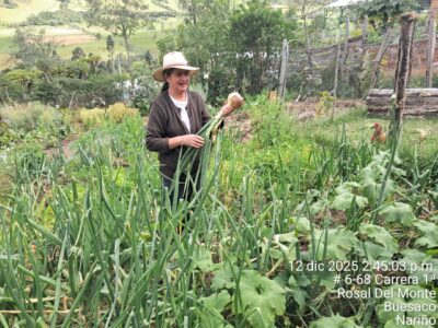 Continuamos a reforçar a segurança alimentar de 80 famílias do corregimento de El Rosal del Monte, no município de Buesaco, através da construção de três viveiros comunitários. Estes destinam-se à germinação, sementeira, fornecimento e distribuição de plântulas (plantas jovens recém-nascidas), permitindo dar continuidade à implementação de hortas familiares e ao acesso regular a alimentos frescos e diversificados.