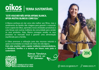 A Oikos promove a utilização justa dos recursos naturais e apoia comunidades na criação de meios de vida dignos. Com este voucher, está a apoiar mulheres empreendedoras, a fortalecer famílias e a semear um futuro mais justo e sustentável.